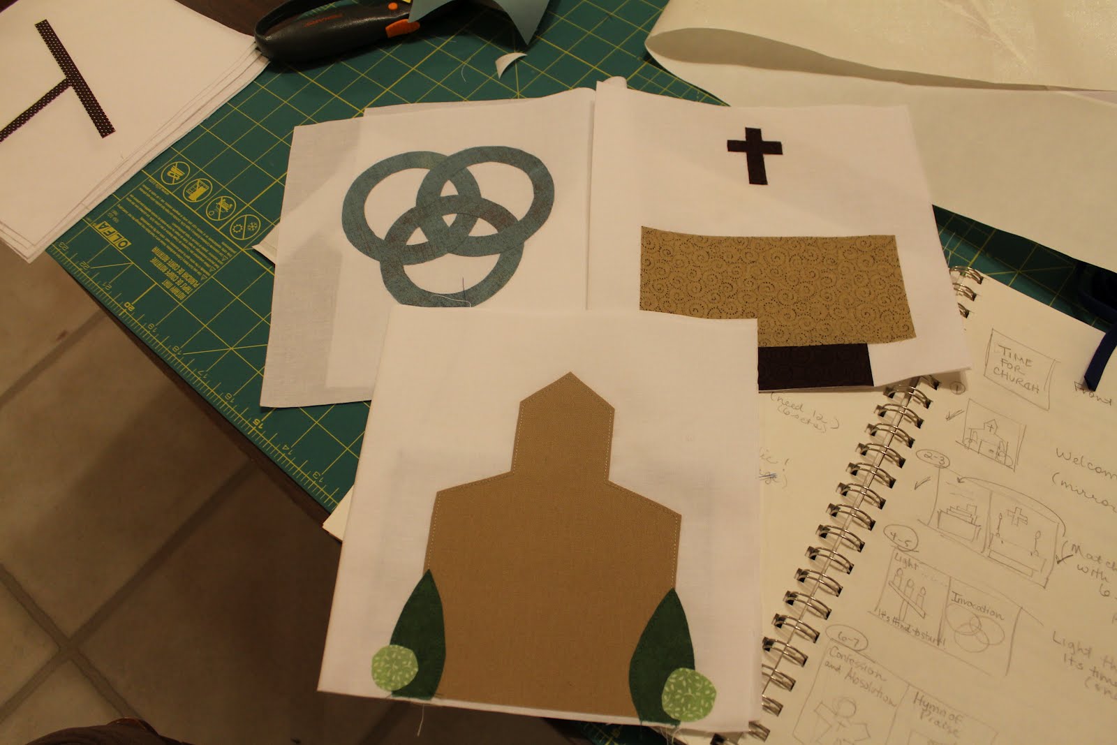 Fourth, a sneak peak at the latest church themed quiet book. Getting pages ready for the hand sewing to commence over our vacation!